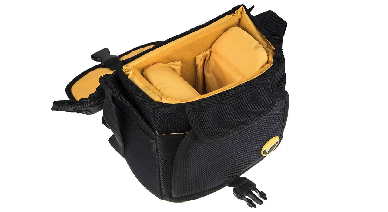 دارای فضای کافی برای نگهداری یک دوربین DSLR با لنز متصل و یک لنز و فلاش , ابعاد داخلی: 115 × 170 × 200 میلیمتر , جنس: پلیاستر , دارای محلی برای نگهداری لپ تاپ , دارای بند رو دوشی قابل تنظیم و قابل جدا شدن , دارای کاور باران